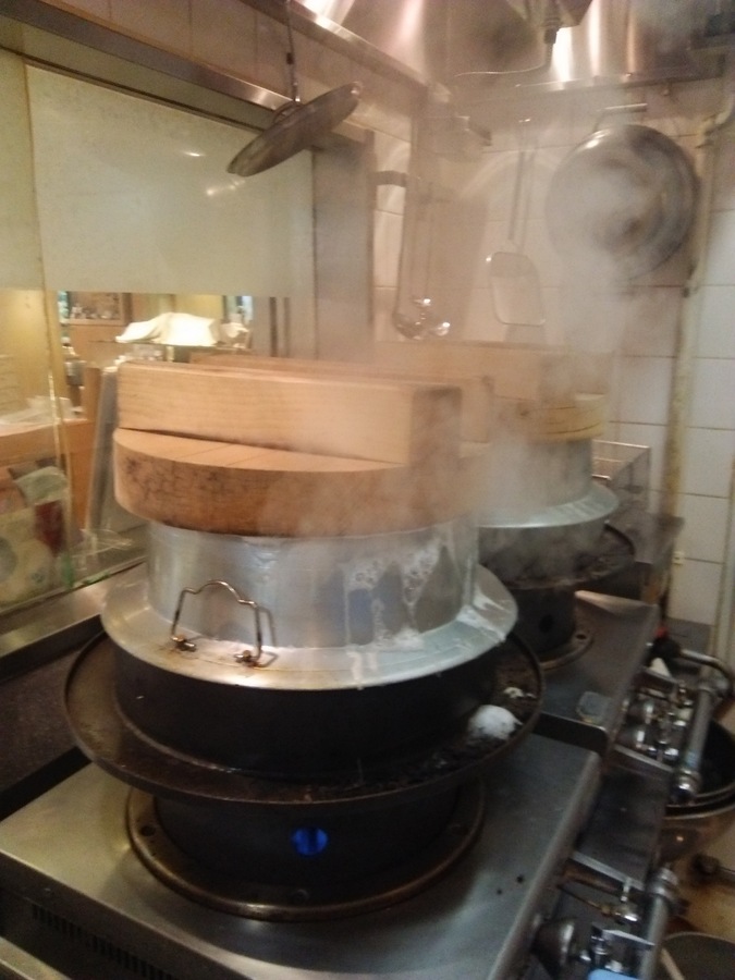 塩むすびは、当店に入って、米研ぎ、シャリ切り、炊飯、サンプル、和え物炊き込みお結び、具材の入った白結び、それらを経過してから